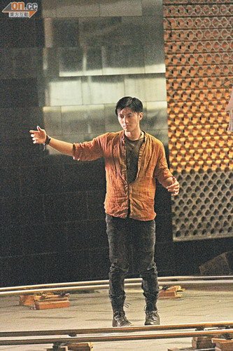 前晚谢霆锋约九点半左右现身中环遮打花园拍外景,数十粉丝闻"锋"而至,谢霆锋到场后与工作人员研究拍摄角度,然后站在圆形摄影路轨中拍跳舞戏,随着现场播放浪漫的英文歌,合起双眼陶醉地与空气跳舞。每拍完一个镜头谢霆锋都紧张地立即戴上3D眼镜看Playback(回放),凌晨时分转到尖沙咀继续拍摄,至昨日清晨七点才收工。