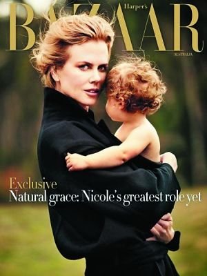 妮可·基德曼最近携女儿Faith为时尚杂志拍摄封面,封面上的妮可身穿黑色大衣,怀中的女儿Faith则面朝背后,没有看镜头,Faith有着一头卷曲的头发,这对母女在照片中显得既和谐又温馨。作为一位母亲,妮可很高兴可以带着女儿一起工作。