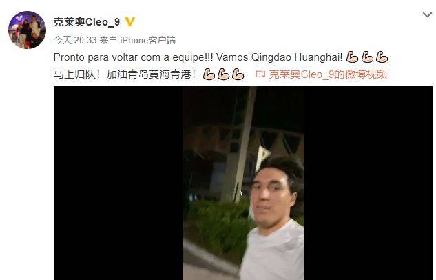 克莱奥写道:"马上归队!加油青岛黄海青港!"不出意外的话,克莱奥即将成为青岛黄海本赛季的保级关键球员。
