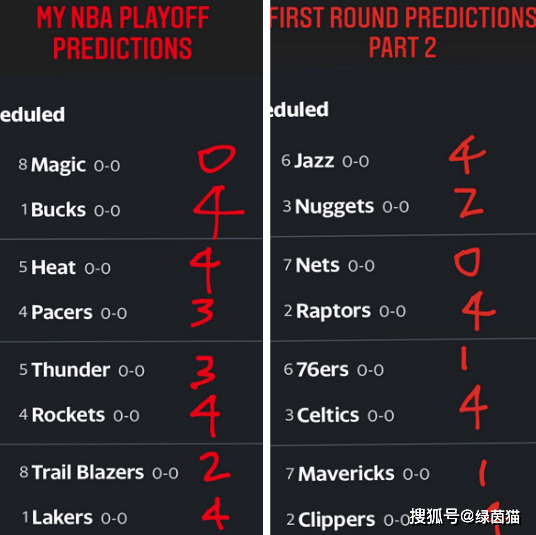 两场4-2包括了湖人淘汰开拓者和爵士以下克上淘汰掘金,虽然开拓者很热门,但他们的防守面对湖人很难有机会。掘金和爵士的实力差距并不大,两队也都有出色的后卫和前锋。两场抢七决战是红队淘汰雷霆,热火淘汰步行者,整体上来看问题也不大,都是实力更强的一方惊险的赢得系列赛,其中不乏有林书豪力挺自己的老东家,他和大胡子也当过队友。