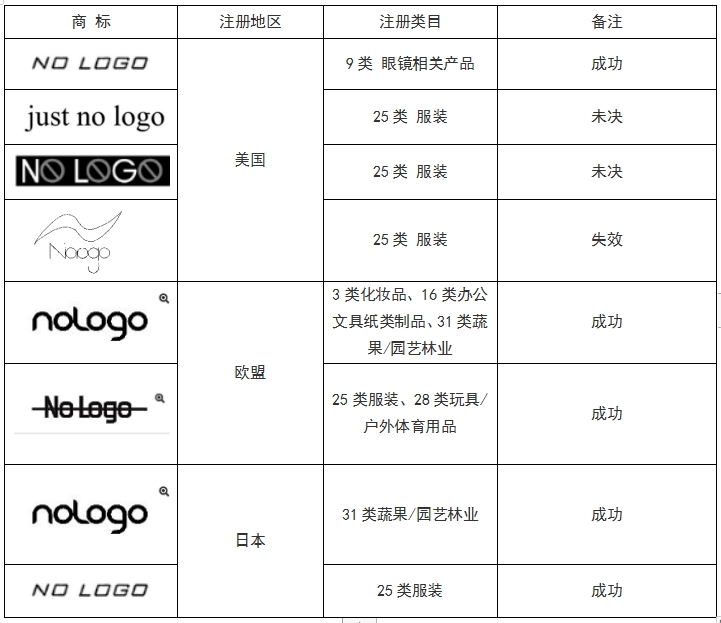 图5 no logo部分图片商标在美国及欧盟注册情况梳理