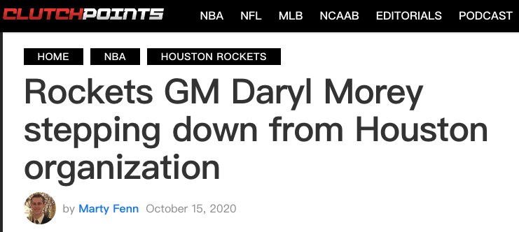 不配拥有姓名的NBA记者率先报道:休斯顿火箭队现任总经理达雷尔·莫雷辞职。