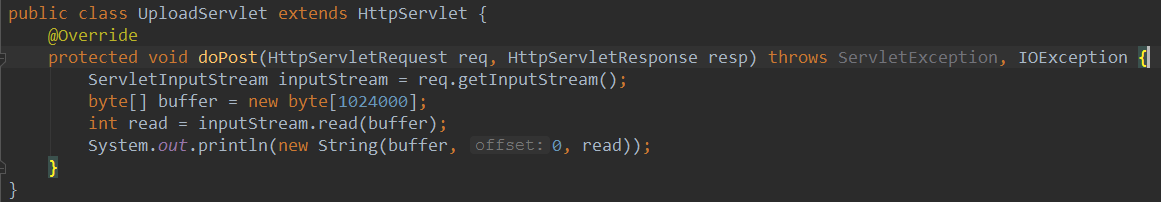 使用UploadServlet程序接收上传的数据: