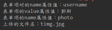 public class UploadServlet extends HttpServlet { @Override protected void doPost(HttpServletRequest req, HttpServletResponse resp) throws ServletException, IOException { //1 先判断上传的数据是否多段数据(只有是多段的数据,才是文件上传的) if (ServletFileUpload.isMultipartContent(req)){ //创建FileItemFactory工厂实现类 FileItemFactory fileItemFactory = new DiskFileItemFactory(); //创建用于解析上传数据的工具类ServletFileUpload类 ServletFileUpload servletFileUpload = new ServletFileUpload(fileItemFactory); try { //解析上传的数据,得到每一个表单项FileItem构成的集合 List<FileItem> list = servletFileUpload.parseRequest(req); // 循环判断,每一个表单项,是普通类型,还是上传的文件 for (FileItem fileItem : list){ if (fileItem.isFormField()){ //普通表单项 System.out.println("表单项对的name属性值:" + fileItem.getFieldName()); System.out.println("表单项的value属性值:" + fileItem.getString("UTF-8")); }else{ //上传文件表单项 System.out.println("表单项的name属性值:" + fileItem.getFieldName()); System.out.println("上传的文件名:" + fileItem.getName()); //将文件写入磁盘的某个位置 fileItem.write(new File("c:\\" + fileItem.getName())); } } } catch (Exception e) { e.printStackTrace(); } } }}效果: