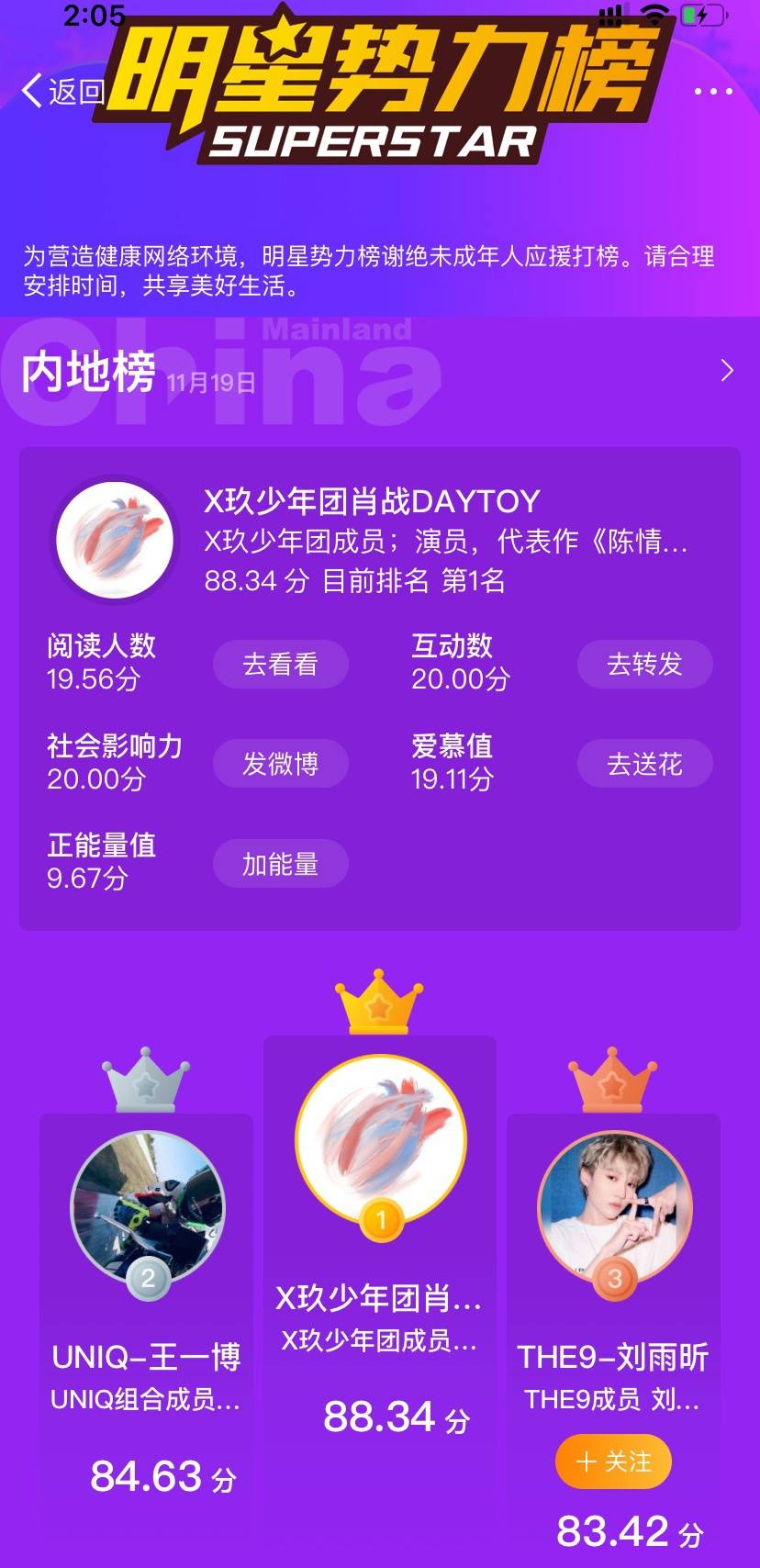 肖战本人因为《狼殿下》的播出也是引发热议,昨天也登顶内地明星势力榜,之前王一博经常霸榜,肖战来了,勇夺第一,其实肖战的热度比王一博高出很多。
