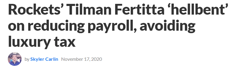 昨天据The Athletic记者Kelly Iko与David Aldridge联合报道,费尔蒂塔已经决心削减火箭的工资开销,避免球队在未来缴纳奢侈税。这释放出来的信号已经非常明显了,火箭的文化正在发生转变,未来的目标将不再是冲击总冠军,球星撑门面,保证门票,打到哪算哪。