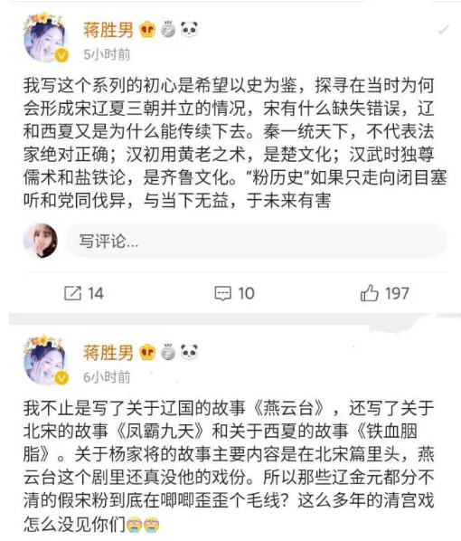 作者想借diss部分网友的发言去标榜自己的素养实在大可不必,毕竟不管是从她写的《芈月传》还是如今的《燕云台》都能看出来她的历史素养到底如何。