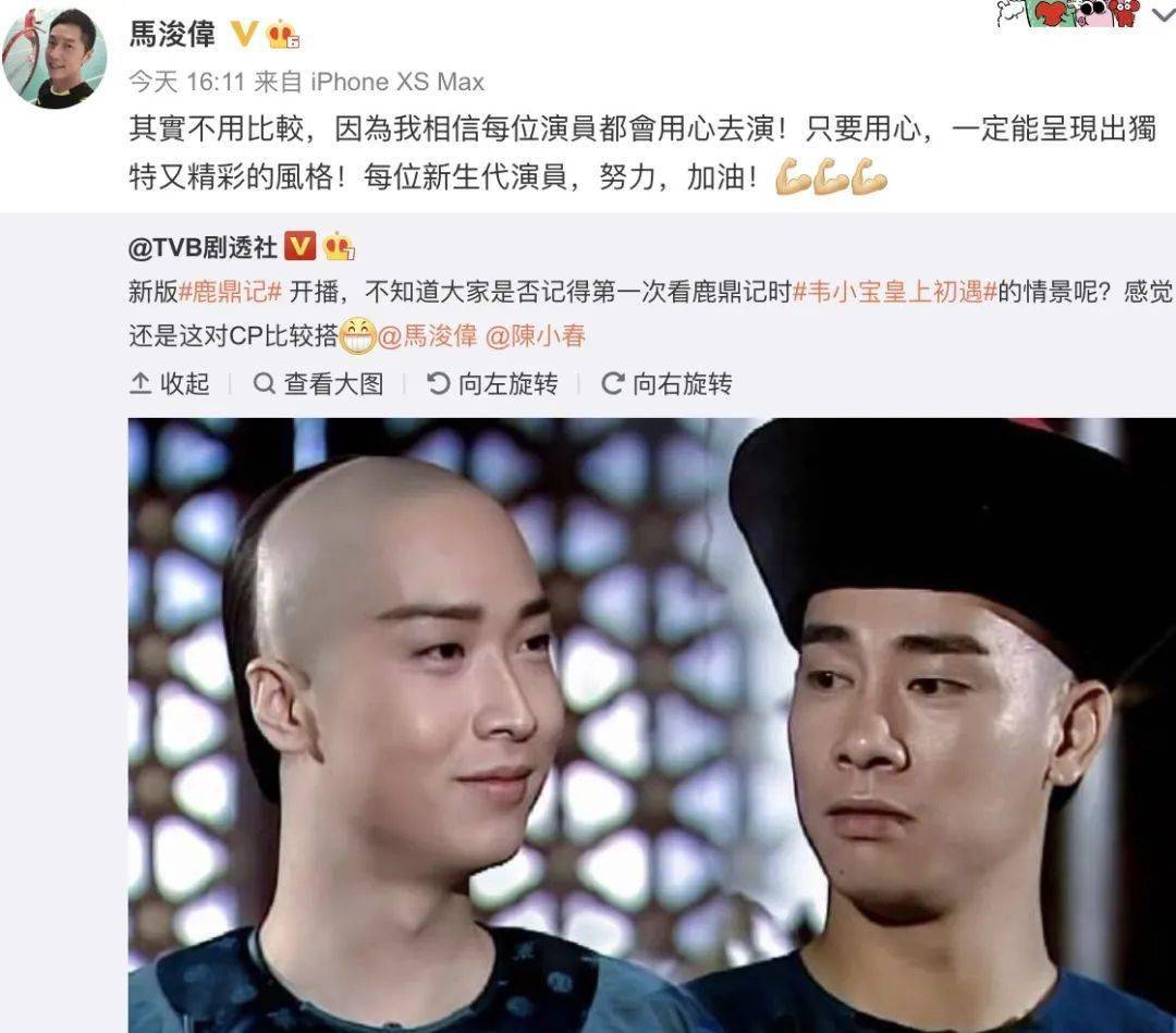 98版康熙的扮演者马浚伟看到张一山被人比较,也转发称:"其实不用比较,因为我相信每位演员都会用心去演!只要用心,一定能呈现出独特又精彩的风格!每位新生代演员,努力,加油!"