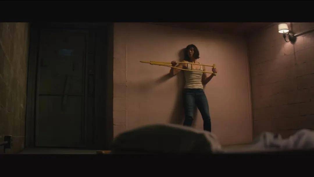 在地下室安心的日子没持续多久,米歇尔就在地堡中发现了一个秘密:在通向地面的玻璃窗上,被人反向刻着"help",字迹上面还带着血迹。