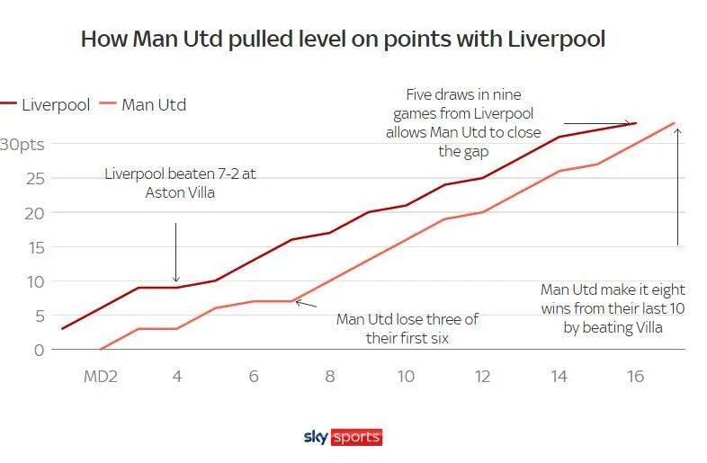 这3场比赛之间,曼联虽然也被莱斯特城2-2追平,但仍然抹掉了与利物浦的5分差距。