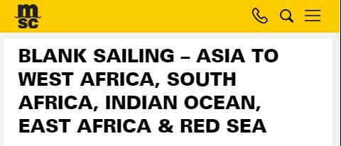 地中海航运公司(MSC)已确认在未来几周内,其亚洲至西非、南非、印度洋、东非和红海的航线将有几个航次停航。