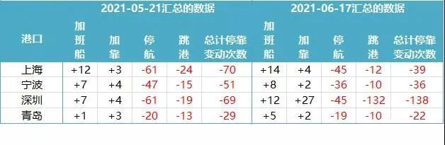 根据容易船期截止至6月17日汇总的数据显示:2021年6-7月(即首港出发在第23-31周总计9周内)亚洲到北美/欧地航线共计停航69个航次。