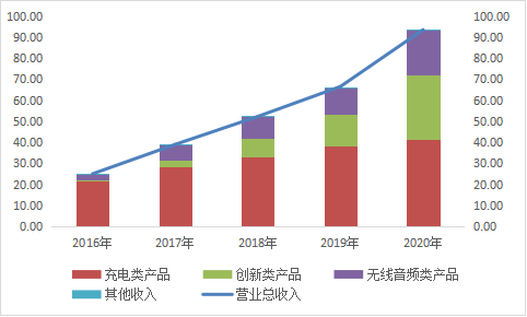 在无线音频领域,公司以"Anker"、"Soundcore"、和"Zolo"三大品牌独立展开运营,主要涵盖的细分品类包括无线音响、无线耳机,产品具有高品质音效、质量优质、持久耐用等优势。2020年,公司无线音频收入达到21.2亿元,占总营收比例为22.7%。