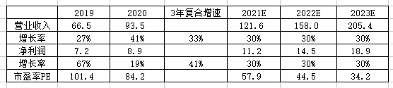 我们假设未来3年安克保持30%的增速,根据粗略测算,2021-2023年其营收为121.6/158.0/205.4亿元;净利润分别为11.2/14.5/18.9亿元,对应PE为58/45/34倍。