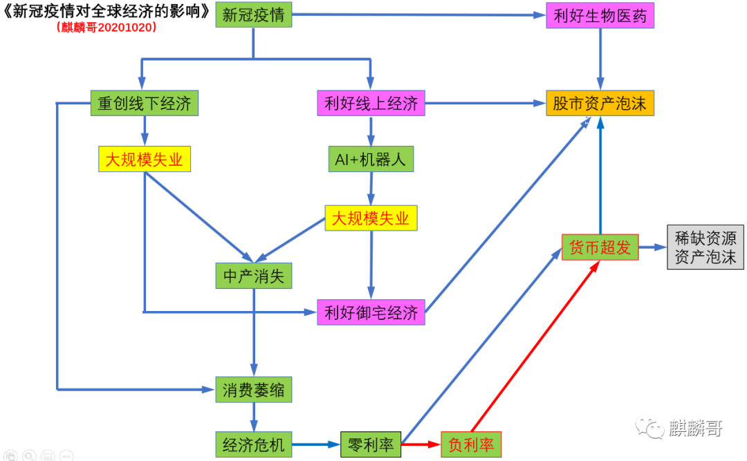 下面这张图是我在去年十月份给以上机构,做新冠疫情对经济、社会和资本市场影响的研究报告里,起始的一张图。