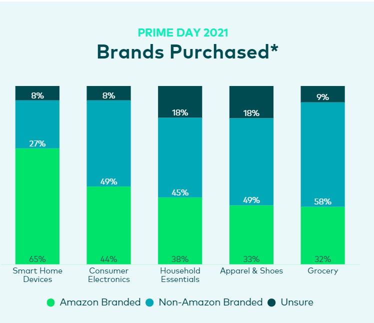 在购买智能家居设备的消费者中,65%的人表示他们购买的是亚马逊自己的品牌,38%购买了家庭必需品和33%购买了服装和鞋类的买家表示有同样的看法。52%的买家在购买时只考虑在亚马逊购物,而 48%的人考虑了其他的平台,有19%的人在购买前比较了价格。