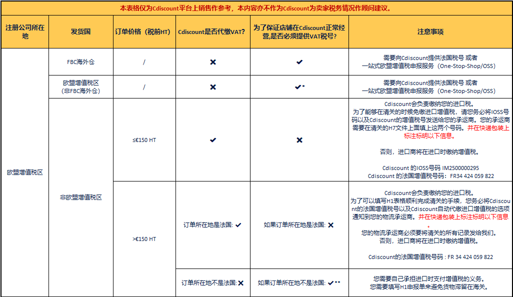 IOSS号码和Cdiscount的VAT号码不得用于海外仓发货