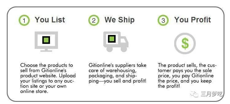 它的本质是销售产品而没有实际的库存,你可以直接从供应商/制造商拿货,利用自己的电子商务平台销售产品。作为零售商,不必积压大量的商品库存,甚至使用的是零库存,而当有订单的时候,把订单转交相应的供货商或者厂家,由他们直接发货给零售商指定的客户。