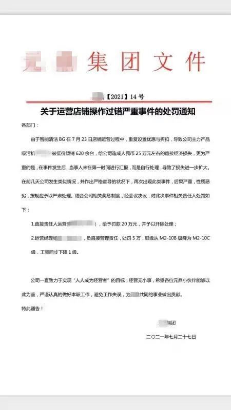 1. 同类事情在我们公司今年总共发生过四次,性质基本相同,累计造成损失近200万,前面两起未做任何经济处罚和人员处罚,只是在内部通告批评。第三起是7月中旬发生的,损失了50多万,公司做了详细的规避制度方案以及宣讲,并且对运营团队做了培训和强调,结果不到一周,就发生了你看到的第四起同样的事件,损失了25万。