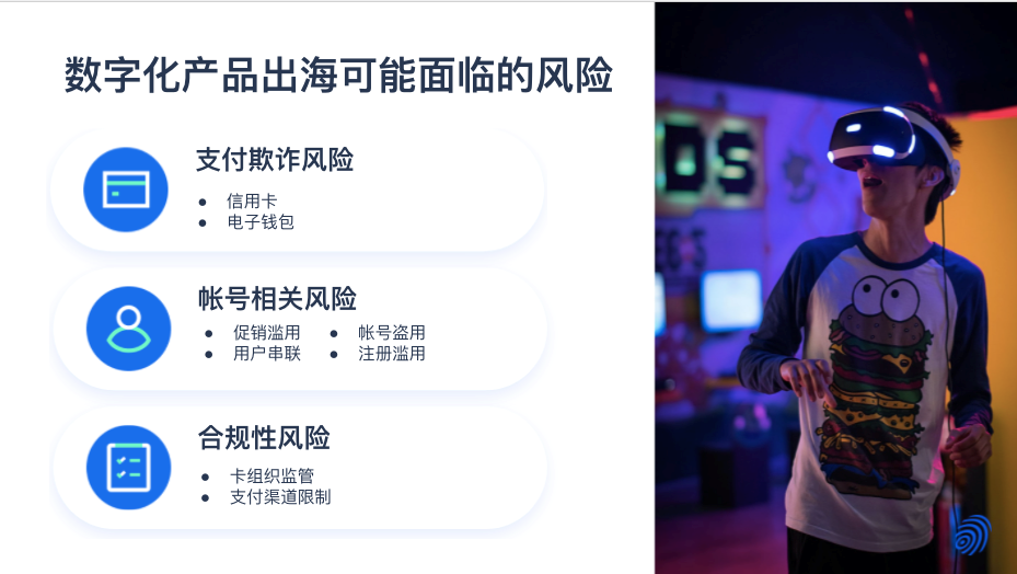 为什么数字化产品出海可能会遇到更高的风险?我们都知道,数字化产品包括游戏、社交、数字产品交易平台、软件应用等多个范畴,这些产品所面临的风险往往包括了支付欺诈风险、帐号相关风险以及合规性风险。