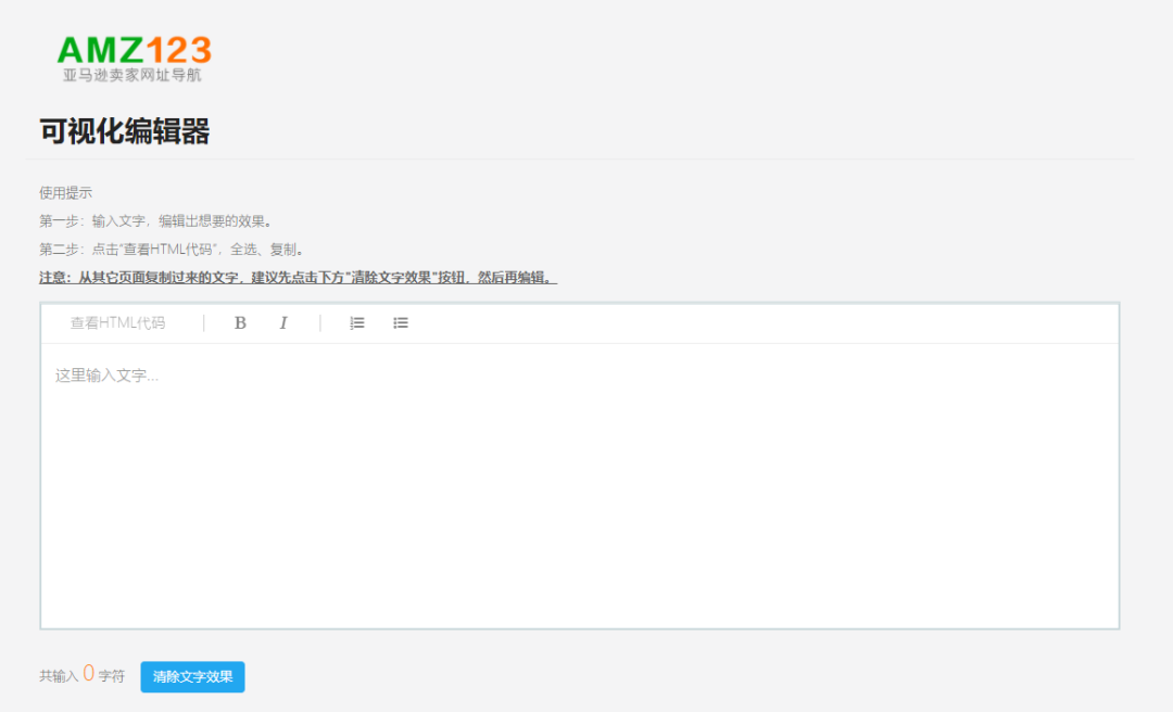 可视化编辑器,基本上各个网站都有,随手搜一个Amz123的