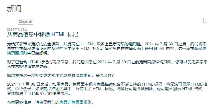 最近好几个卖家问,收到亚马逊的消息通知:亚马逊的商品详情页,不再支持HTML标记,以后上传产品,该怎么办呢??