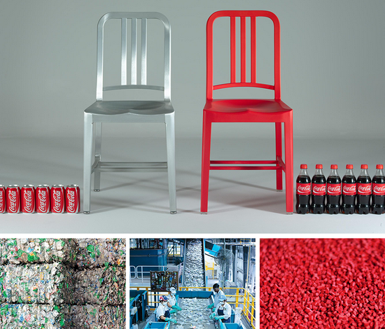 把塑料可乐瓶经过粉碎、上色、注模成型