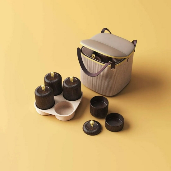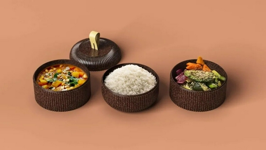 这套用可可豆壳、菌丝体和菠萝壳等食材制作的可重复使用快餐盒