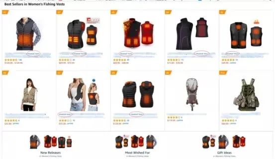 说到"保暖神器",数小魔又想到了前两年每到秋冬就在亚马逊美国站、欧洲站、日本站的服饰品类里独领风骚的一款产品——electric heated vest(电热背心)。