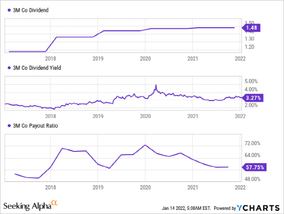 股息是 3M 历史上最亮点之一。该公司 62 年来一直在支付不断增长的股息,投资者预计 2 月份将再次增加股息。然而,投资者不应期待大幅上涨,因为该公司已经支付了接近 60% 的每股收益。股息是安全的,目前的收益率为 3.25%,具有吸引力。