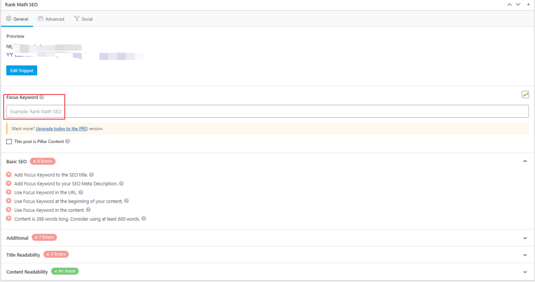 然后呢,在你编辑页面内容的时候,就可以看到Rank Math的功能模块了。