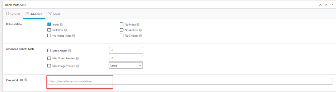 点击advanced高级设置,去设置该页面的规范链接canonical URL