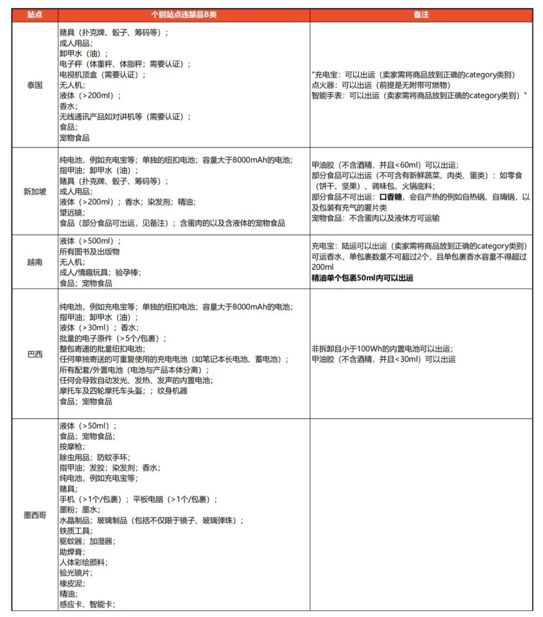 近日,Shopee平台发布公告,更新马来站点、泰国站点违禁品B类标准。