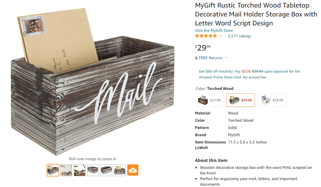 这是一款木制的信件收纳盒,外观上做了烤制效果,也就是所谓的"做旧",让产品看起来有年代感,可以作为家居装饰品售卖。