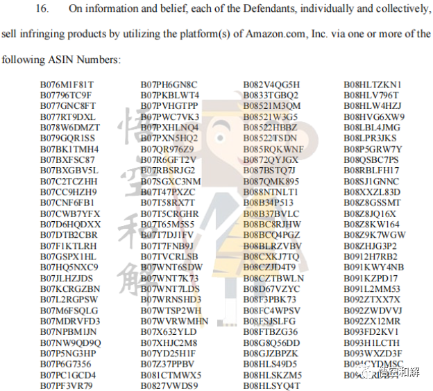 诉状中列举了一些被告的产品: