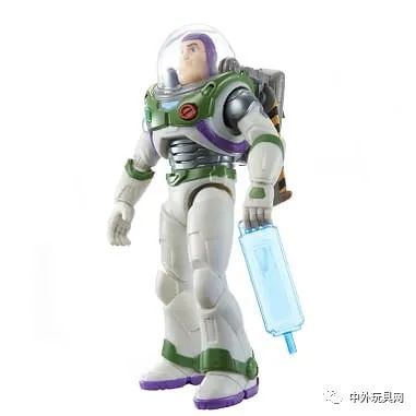 该款巴斯光年玩偶高11.5英寸,身着标志性的太空骑警套装,带有弹出式翅膀、灯光、声音和喷气背包排气装置;孩子们可以使用随附的燃料电池挤压瓶为巴斯光年的喷气背包加油,当玩偶被抬离地面时会激活真实的蒸汽轨迹和声光效果;巴斯光年的胸甲上还有两个按钮,按动其中一个可以让玩偶说出电影中的经典台词,按动另一个则可以展开玩偶的喷气背包机翼,使其起飞。