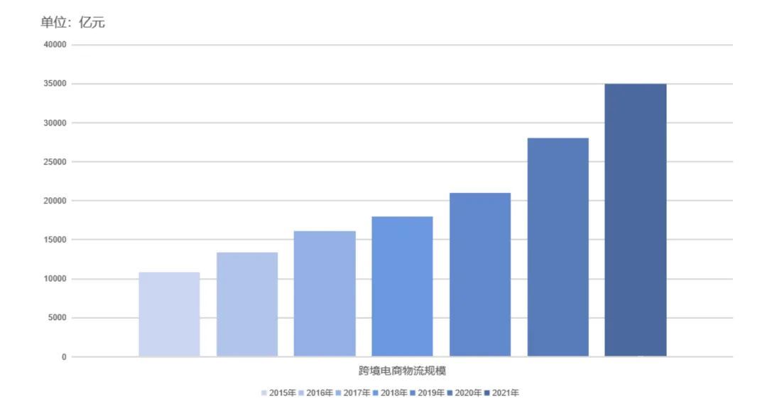 从行业数据来看,跨境电商物流的规模,已经从2015年1.08万亿元,增长到2021年的3.5万亿。根据我们的预测,到2025年,行业规模将达到4.5万亿元。