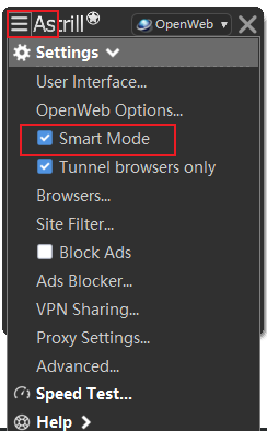 点击Astrill软件左上角,点击勾选中"Smart Mode"就可以了。为什么这样就会欢快的访问内外网了?