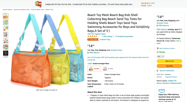 消费者对家庭式娱乐的关注也反映在了沙滩的产品上。在过去的90天里,亚马逊上的沙滩玩具的销售量增长了近40%。其中值得特别注意的是,儿童网状沙滩袋在上个月的收入增长了3000%以上!