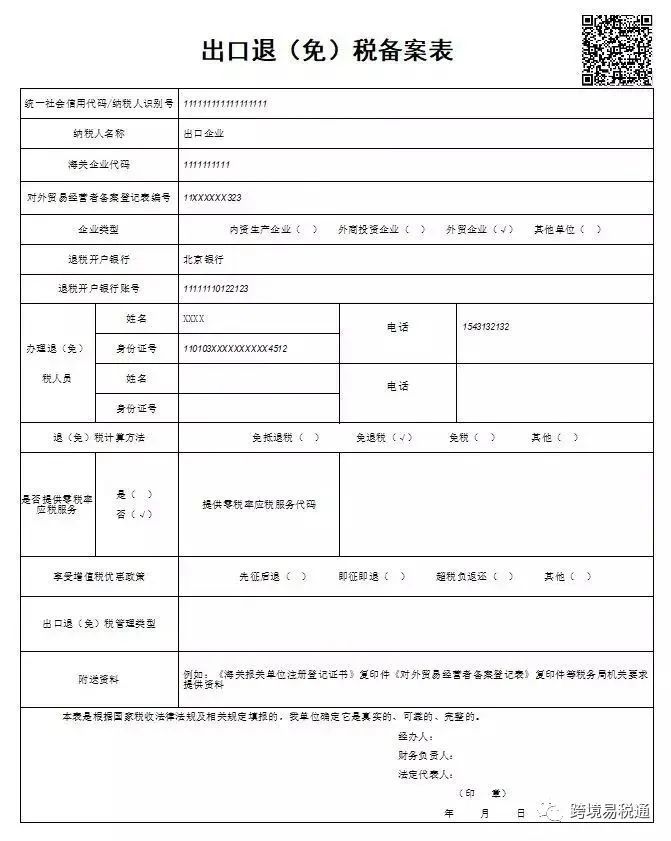 (出口退税备案表)