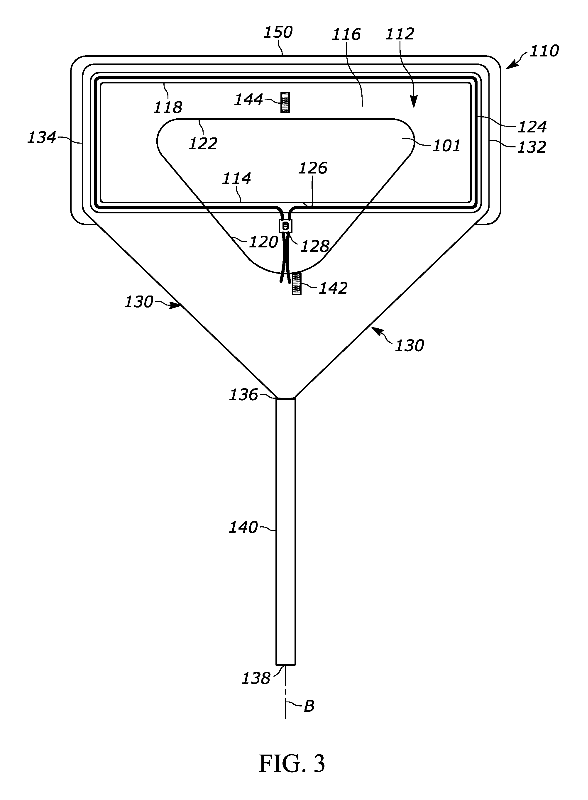 罩部分还包括由柔韧材料(例如,聚乙烯或类似材料)的网状物(例如,一个或多个片材)形成的侧壁,其从远侧开口的周边向外延伸以终止于近侧开口。近端开口具有与远端开口隔开并相对的周边。