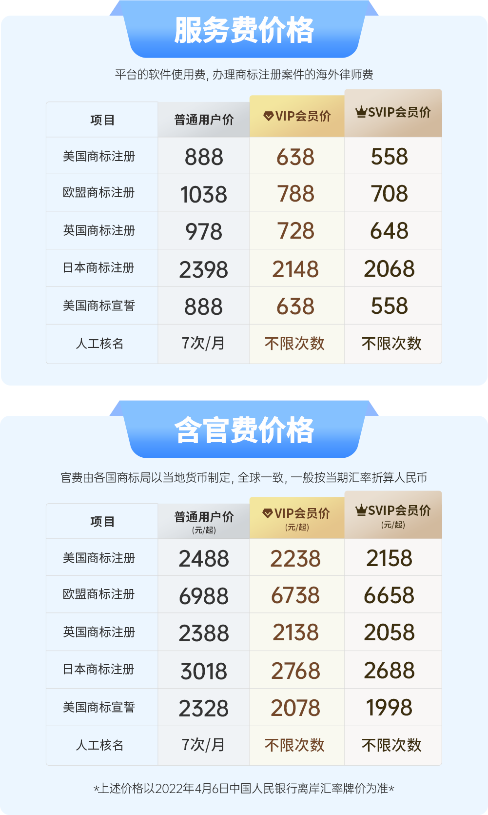 你可能会问什么是VIP和SVIP?你可能还会问为什么分软件服务费和官费?有什么区别?别着急,下文将从价格构成中,带你了解清楚商标到底如何收费?
