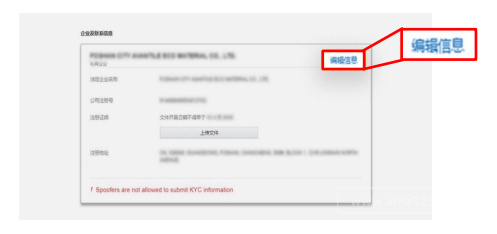 1)当您在校对时发现信息错误,请点击"编辑信息",进入企业及联系信息编辑页面;