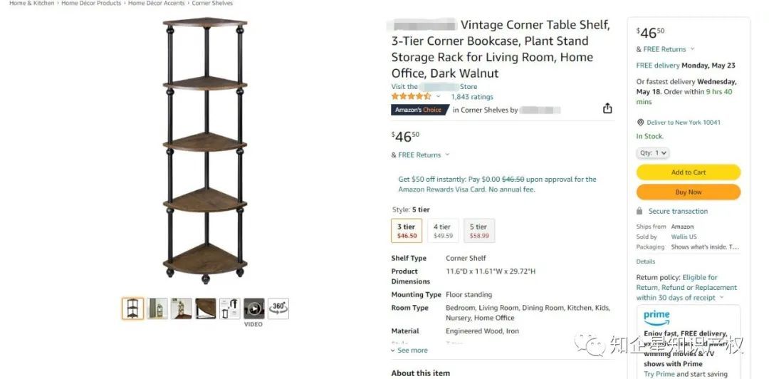 今天在亚马逊看到一款转角桌架,它是美亚站的Amazon'sChoice,售价58.99美金,留评1848颗星。