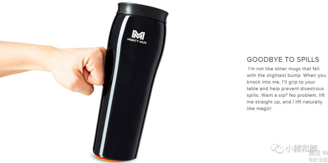 MIGHTY MUG 不倒水杯Mighty Mug 是一款能够在不小心撞到时通过将少量空气困在底座中来防止摔倒;然后像任何其他杯子一样自然举起的产品。公司:MIGHTY MUG, INC