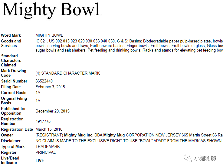 商标:Mighty Mug ,Mighty Bowl