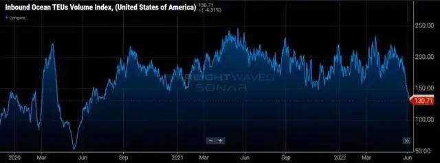 据财联社消息,在本周二,知名数据分析网站Freightwaves就在一篇《美国进口需求正在断崖式下降》中提到,尽管2022年前五个月入境美国的货物数量强劲,但进口需求不仅在走软,而且还在急剧下降——在过去几周内下降了36%。