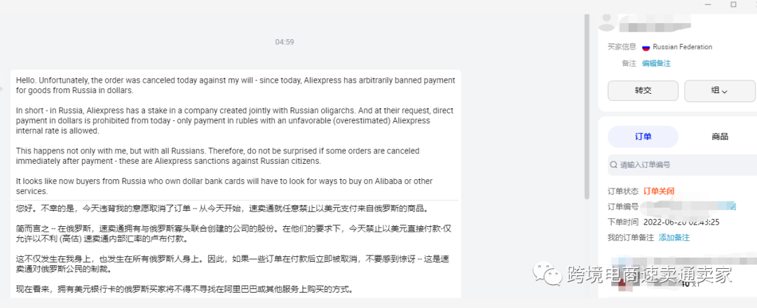 这不仅发生在我身上也发生在所有俄罗斯人身上,因此如果一些订单在付款后立即被取消 ,不要感到惊讶--这是速卖通对俄罗斯公民的制裁。