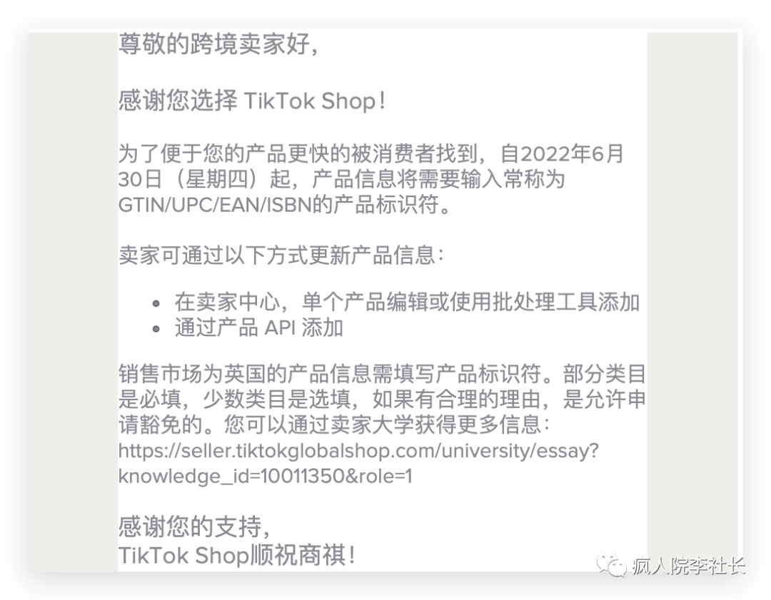 所以TikTok要求大家上传GTIN码也是顺理成章的。
