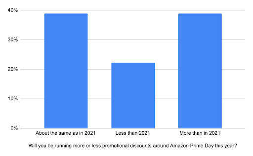 由于利润下降、供应链问题和通胀压力等多种原因,许多品牌不再愿意在 Prime 会员日提供大幅折扣。根据 Bobsled Marketing上周发布的 6 月份研究,在对 60 个品牌(杂货、化妆品、服装、电子产品和婴儿用品。)的抽样调查中,39% 卖家计划在会员日的折扣力度和去年相同,22% 卖家表示与去年相比,他们的打折幅度将减少。